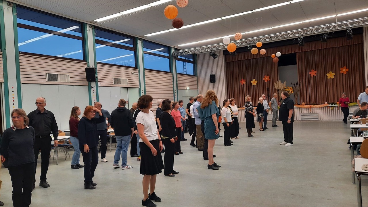 Auch die erwachsenen Tänzerinnen und Tänzer können sich über regen Zuspruch freuen: Trotz zahlreicher Konkurrenzveranstaltungen – u. a. der Hochheimer Markt) – fanden ca. 120 Tänzerinnen und Tänzer am 09.11. den Weg zum TV-Tanztreff ins Bürgerhaus Ginsheim. Hier bot sich neben einem appetitanregenden Kuchenbuffet die Gelegenheit, intensiv das Tanzbein zu schwingen. Wer wollte, konnte unter Leitung von Michael Maag einen Line-Dance erlernen, was mittlerweile auch zu einer Tradition auf den Tanztreffs geworden ist. Der nächste Tanztreff ist für 26.04.2026 geplant.